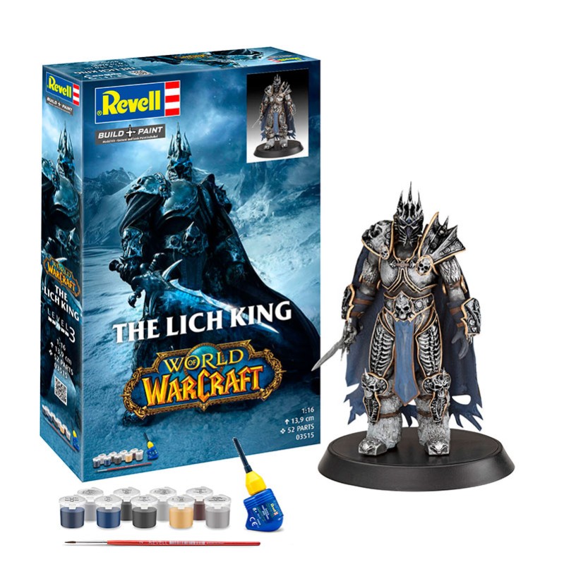 Revell Rey Exanime 1/16 es una maqueta tipo figura perfecta para fans de World of Warcraft: se monta fácil, se pinta genial y luce espectacular en vitrina.